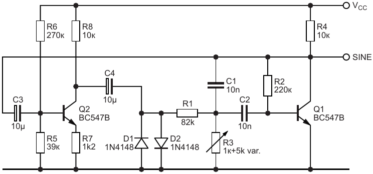 Just a couple of components are needed for a simple tunable sine wave oscillator