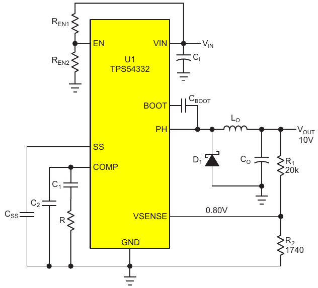 Figure 1. A typical regulator output programming network with a basic two-resistor network for output voltage programming