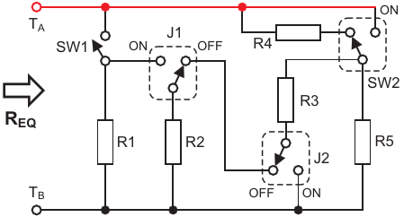 Figure 1. The load-resistor bank topology with four switches and five resistors is straightforward