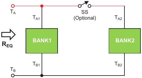 Figure 4. The parallel connection of two load banks enables an increased number of steps for R