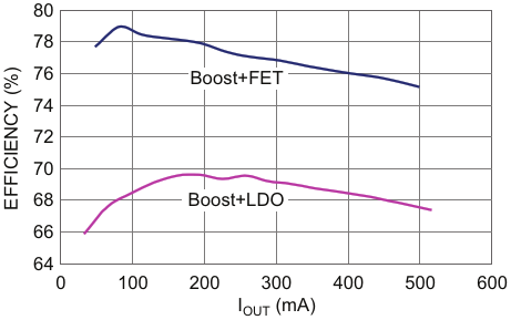 Efficiency of boost/LDO combo and boost/FET combo for V
