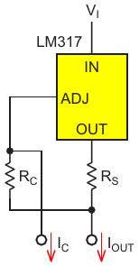 Figure 3. The 1-A, 15-V, PWM-programmed grounded-load current source with a novel LM317 topology. The asterisked resistors are 1% or better and R