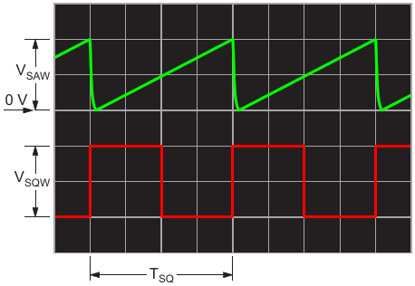 Figure 3. "Square In" and "Saw Out" voltage waveforms where V