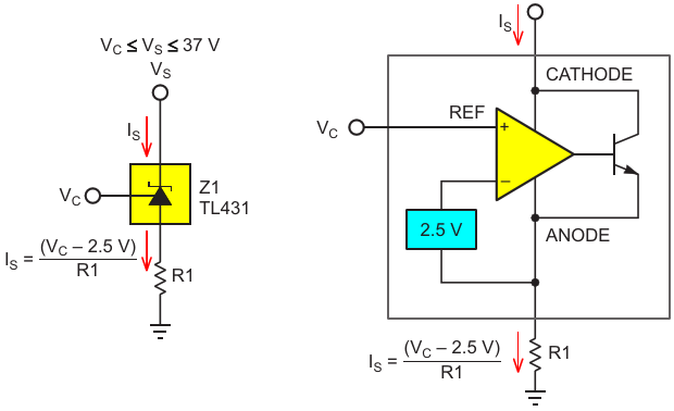 Figure 2. Booster transistor Q1 can handle current and voltage beyond 431 max IC and dissipation limits, while the 3.5-V voltage divider programs a constant I