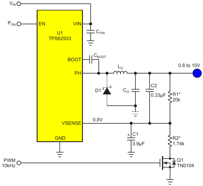 Figure 2. Three parts comprise a circuit for linear regulator programming with PWM