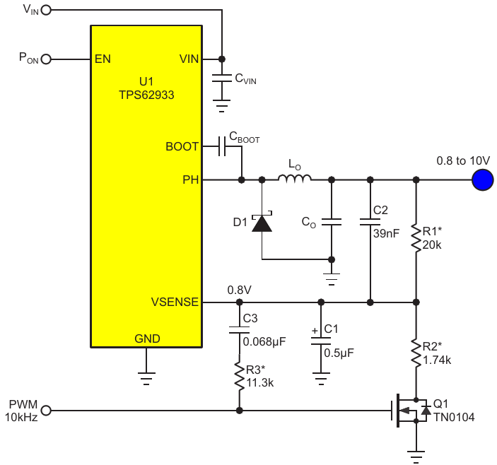 Figure 3. Add R3 and C3 to get analog ripple subtraction (Ref. 1), second-order filtering, and a 7-ms settling time. The symbol "*" represents a precision of 1% or better