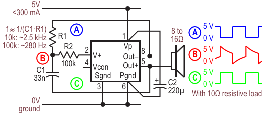 Figure 1. A minimalist power oscillator, with typical waveforms
