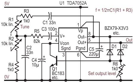 A simple gain control loop helps maintain a constant output amplitude in a basic Wien bridge oscillator