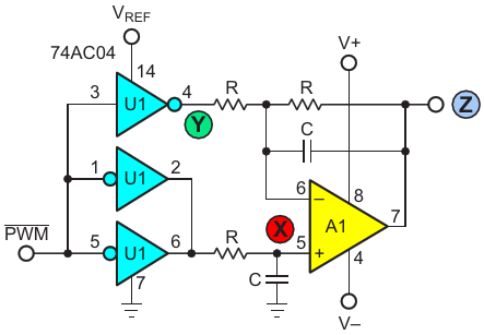 Figure 2. TBH principle sums two 8-bit PWM signals in one 16-bit DAC = V
