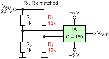 Figure 1. The intuitive solution is a circuit made of a Wheatstone bridge and an instrumentation amplifier