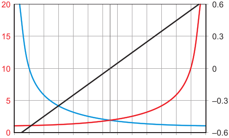 , Red = T+ duration in ms, Blue = T- duration, C1 = 0.001 µF