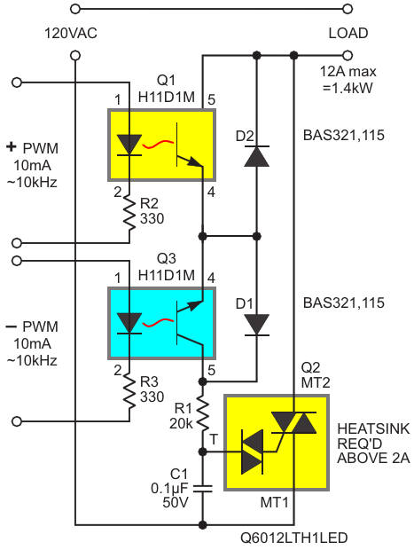 Figure 1. Q1 and Q3 provide independent triggering-time constants for opposite polarity half-waves
