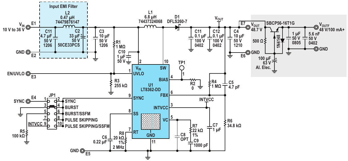Figure 1. This demonstration circuit, DC2628, is the basis for the phantom power supply