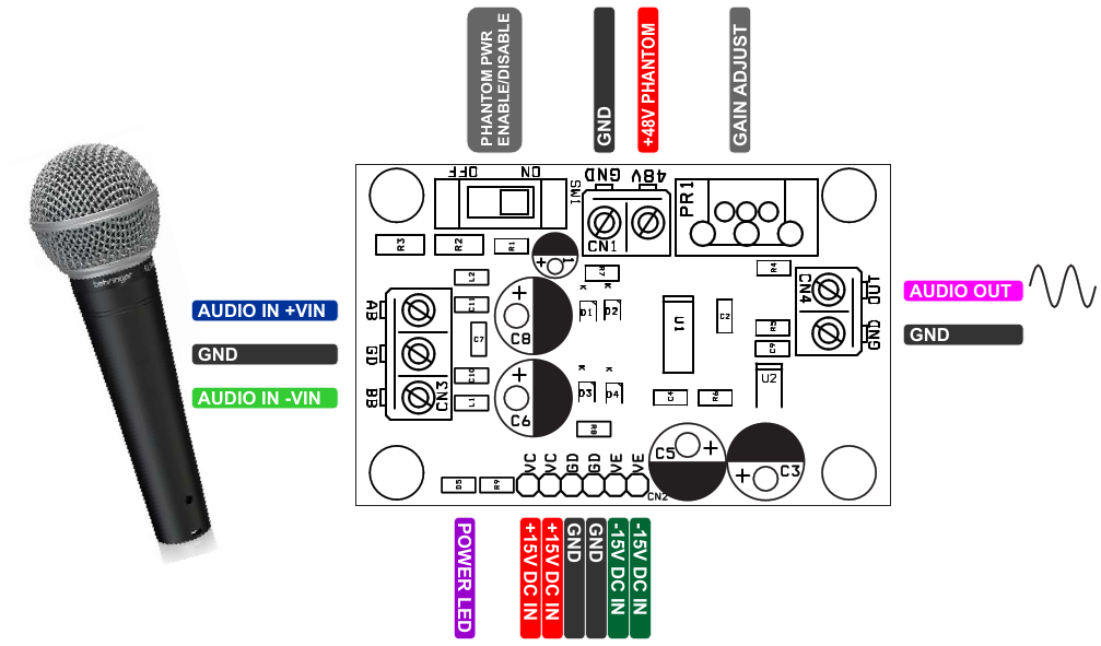 Figure 1. Schematic diagram of a phantom powered microphone preamplifier