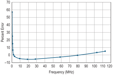 Figure 3. The frequency from 1.07 MHz to 103.0 MHz versus input voltage from 50 mV to 5.00 V