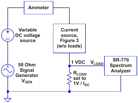 Circuit used to test the impedance of the Figure 3 current source