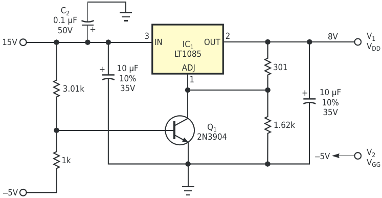 Figure 1. Circuit improves on bias for GaAs FETs