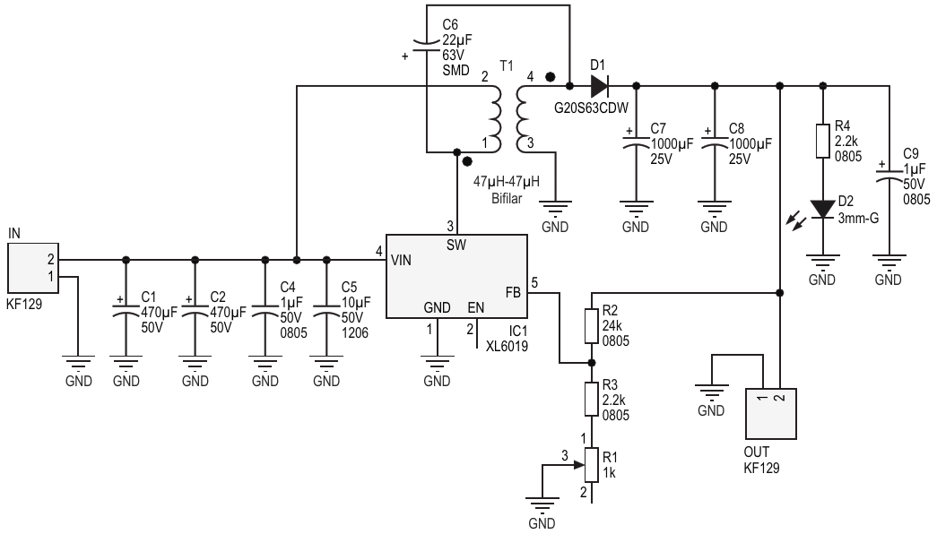 Figure 1. Schematic diagram of the XL6019 buck-boost converter