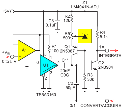 Figure 1. Simple speedy single-slope (SSSS) ADC biphasic conversion cycle
