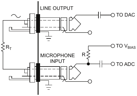 Figure 1. The internal microphone bias resistor and the externally connected thermistor form a voltage divider