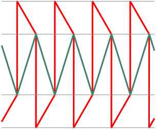 Figure 2. The signal at the A2+ (red) and A2- (green) inputs