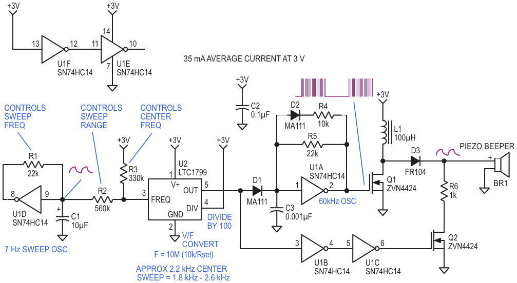 3V sweeping siren alarm