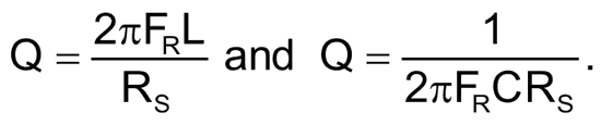 This instrument determines the Q (quality factor) of a resonant circuit, crystal, or resonator by measuring its series resistance at the resonance frequency. The Q is linked to the series resistance by two simple equations (RS is the series resistance, L and C the reactive elements and FR their resonance frequency):