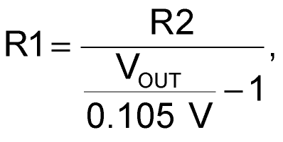 In a classical voltage-regulator design, you can assume the voltage-feedback error amplifier draws no current (actually, in the 10-nA range) from the output. This isn’t true in the example circuit. The driver’s CAP pin and LED pin bias currents are on the order of 70 µA. This level is necessary for the high-side current sensing required to properly drive the LEDs. As a result, R1 has to be small enough to limit the error caused by the bias current. The recommendation is less than 15 W. Given VOUT and R2, R1 can be calculated using the equation: