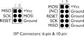 Oh yeah, and credit to Wendel Oskay for the diagram of the standard programmer pinouts.