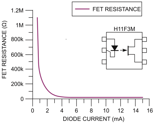 | Figure 1. | The output resistance of a photoelectric FET is nonlinear with respect to the input-LED current. |