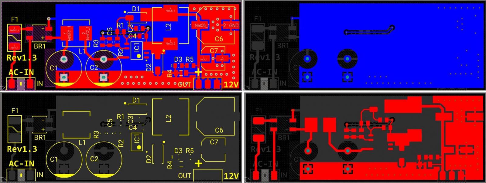 | Figure 4. | PCB layout of the transformerless 85-260 VAC to 12 VDC-0.2 A power supply. |
