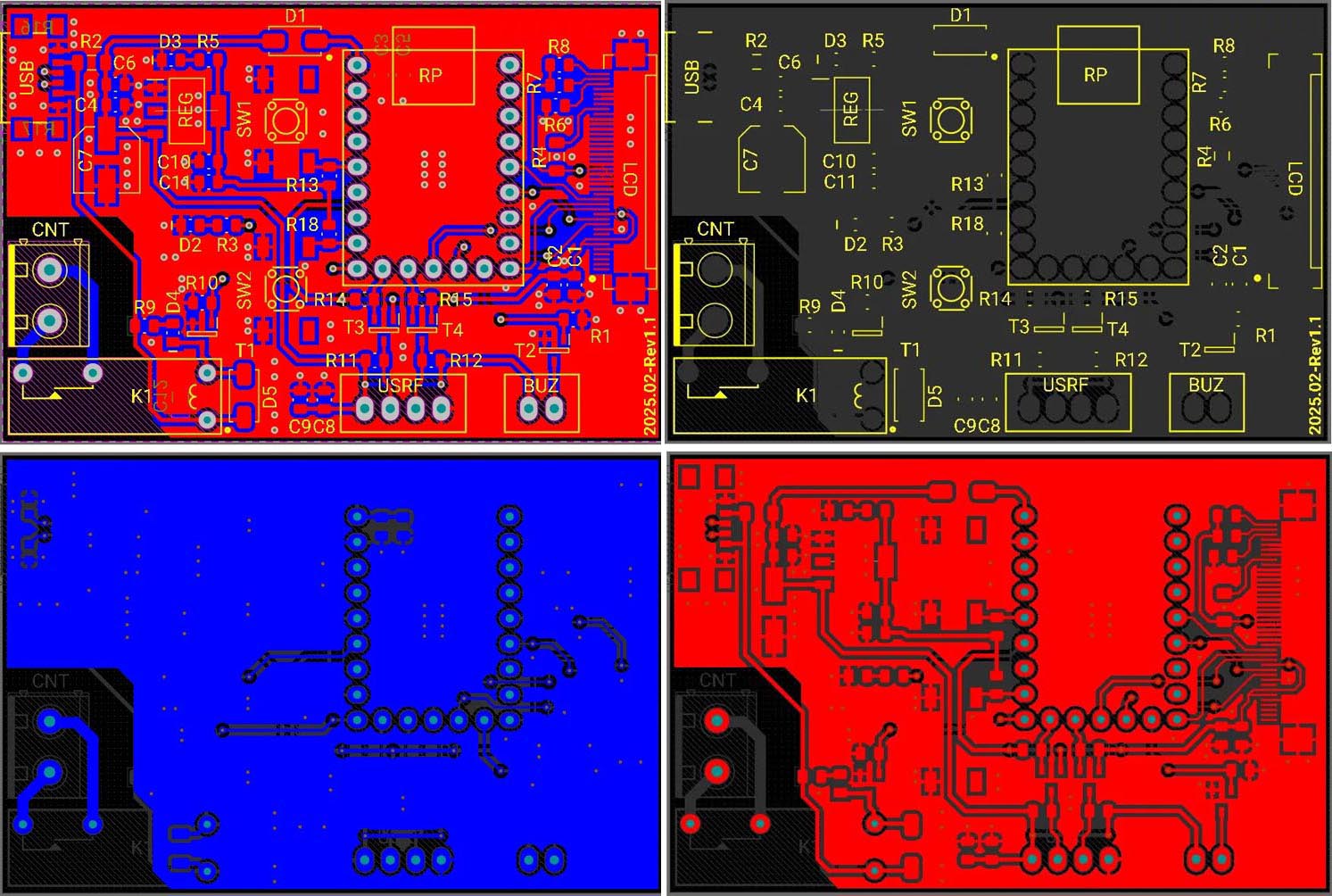 Figure 5 shows the PCB layout of the rangefinder. The Gerber files and firmware for the RP2040 Zero are available in the Downloads section. It’s a two-layer PCB. If we divide the PCB into functional parts, each part is located within a region. This is the most important rule in PCB design.
