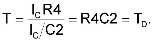 Thus, if R4 is chosen so R4C2 = TD as shown in Figure 3, nonlinearity compensation will be (at least theoretically) complete over the full range of control current. The frequency of oscillator (FO) for this circuit: