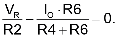 Substituting the component values, IO comes out to around 20 mA. Q1 adjusts the current flowing through R6, which is IO, the output of this circuit. The circuit around Q2 limits the maximum output current to around 30 mA.